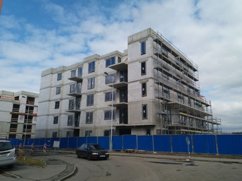 Všechny tři budovy projektu mají své poslední patro - někde dokončujeme kus střechy ( budova A a B) a na domě C se už začalo pracovat na fasádě. Vypadá to, že se opravdu můžeme za nedlouho těšit na den otevřených dveří, kde si budete moci prohlédnout některé z našich bytů v hrubé stavbě objetu B, C.