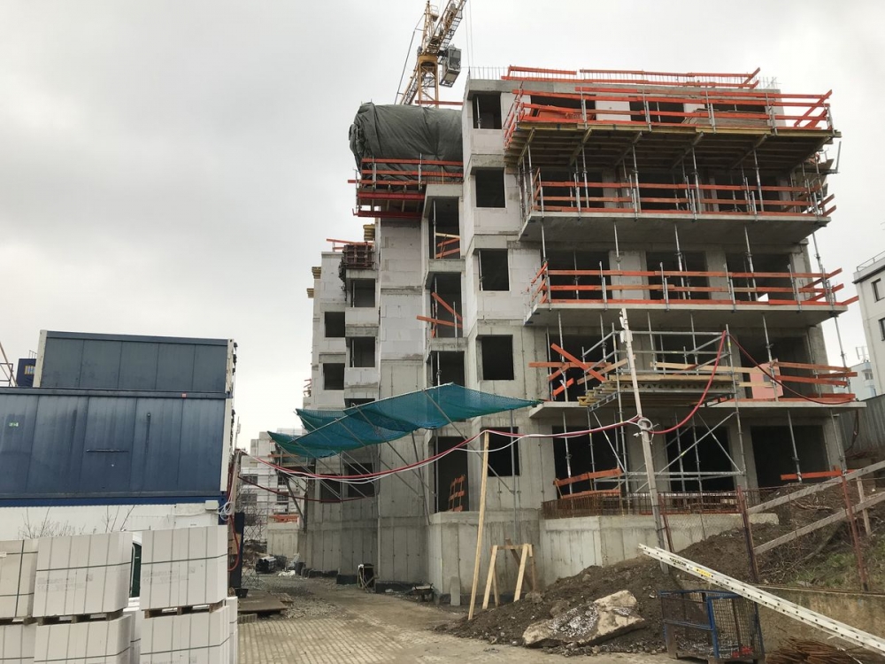 Všechny tři budovy projektu mají své poslední patro - někde dokončujeme kus střechy ( budova A a B) a na domě C se už začalo pracovat na fasádě. Vypadá to, že se opravdu můžeme za nedlouho těšit na den otevřených dveří, kde si budete moci prohlédnout některé z našich bytů v hrubé stavbě objetu B, C.