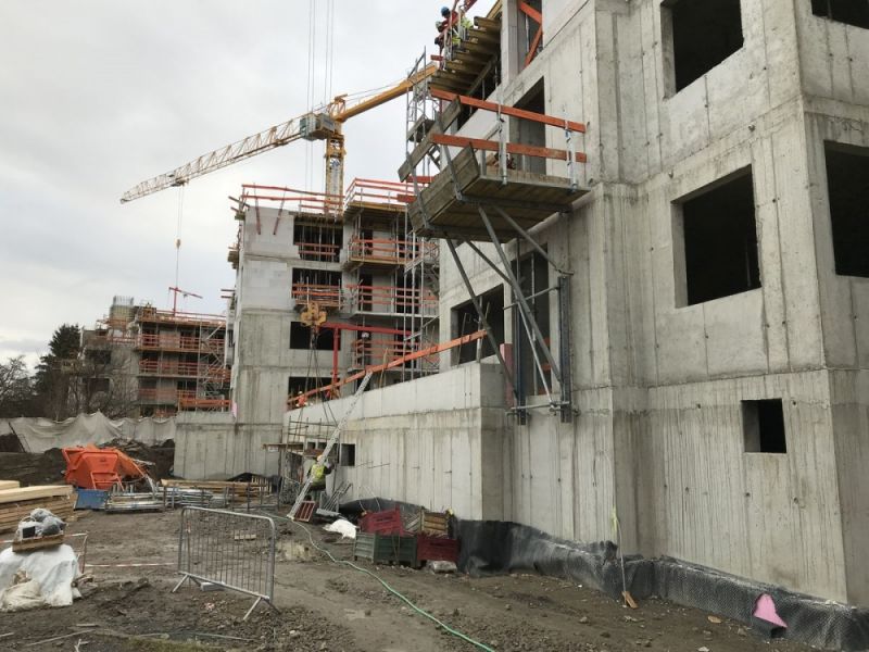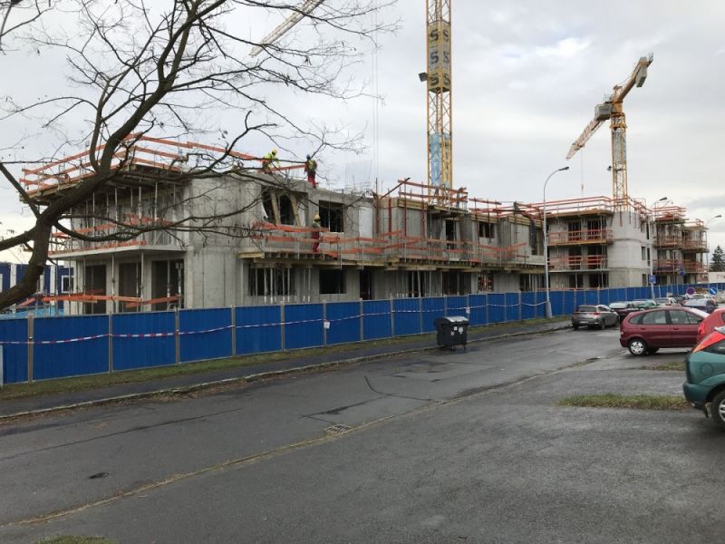 Všechny tři budovy projektu mají své poslední patro - někde dokončujeme kus střechy ( budova A a B) a na domě C se už začalo pracovat na fasádě. Vypadá to, že se opravdu můžeme za nedlouho těšit na den otevřených dveří, kde si budete moci prohlédnout některé z našich bytů v hrubé stavbě objetu B, C.